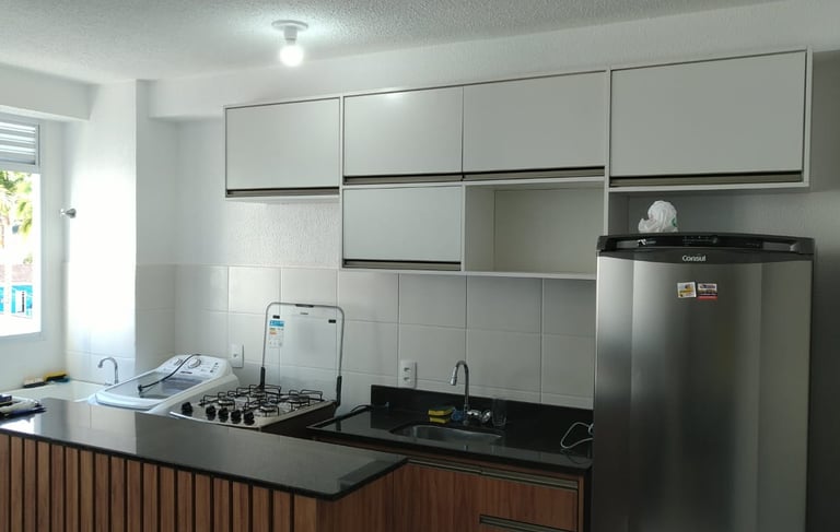 🏠 RESERVA ATLÂNTICA - Estrada dos Bandeirantes, 27.508 - Apartamento de 3º andar, de 42,88 m² - Todo o apartamento com piso, e revestimentos na cozinha e banheiro, Iluminação e ventilação natural, cozinha integrada à sala, torneira com arejador, bacia dual flush.